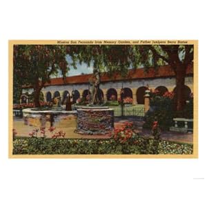 Los Angeles Ca View Of Mission Memory Garden Serra Statue Giclee.